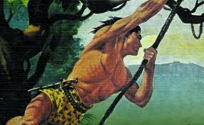 Tarzan having scaled the impossible cliffs of the plateau is now faced with a ten foot wall with sharply pointed wooden stakes pointing downward making a leap and hoist impossible. ERB has left out the overarching tree in this instance so Tarzan does his strongman act. The body builders are never far from ERB’s imagination. Tarzan pulls off an impossible stunt. Leaping up he grabs a couple stakes lifting himself over his wrists until he was above the wall then rolled forward. Only time that trick’s ever been performed. Thus ERB enters that ‘sacred city.’ The sort of Troy that refused Achilles.